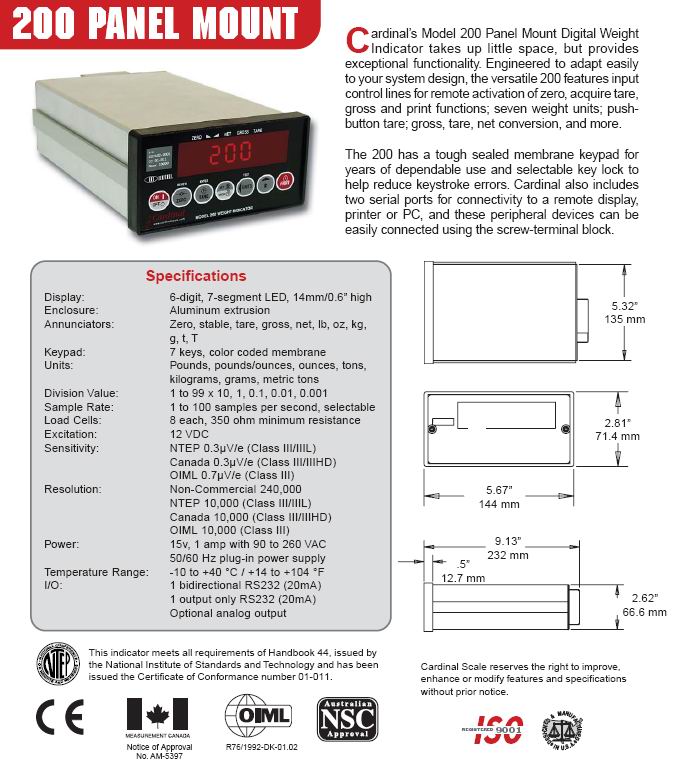 Cardinal 200 稱重顯示儀表(indicator)