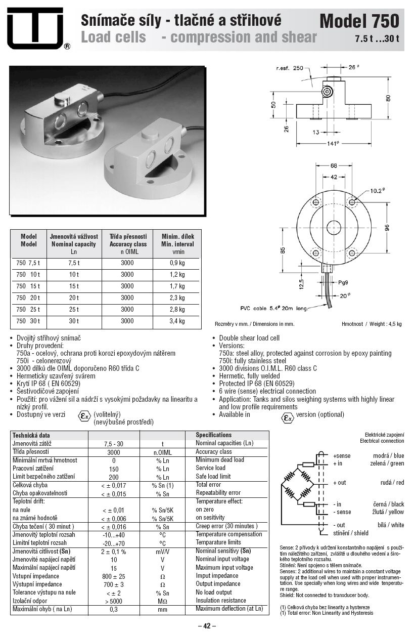 詳細特征: 標準量程:7,5-10-15-20-25-30t 精度等級:3000n. OIML 最小靜載:0% Ln 負載:150% Ln 安裝負載限制:200% Ln 總誤差<±0.017%Sn 重復性誤差 <±0.015%Sn 溫度零度漂移 <±0.01%Sn/5K 靈敏度溫差影響 < <±0.006%Sn/5K 蠕變誤差(30分鐘)<±0.016%Sn/5K 溫度補償: -10 to +40 °C 溫度范圍: -20 to +70 °C 標稱靈敏度(Sn): 2 ± 0.1%mV/V 額定輸入電壓: 10 V 最大輸入電壓: 15 V 輸入阻抗: 800 ± 250 Ohm 輸出阻抗: 700 ± 3 Ohm 空載輸出<±2%Sn 絕緣電阻 > 5000 MOhm 最大偏差(at Ln):0.3mm