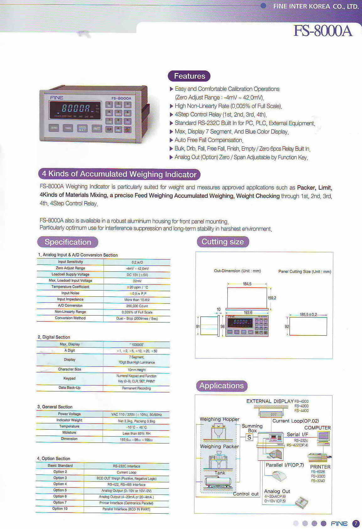 韓國Fine稱重顯示儀表,稱重顯示儀表FS-8000,顯示儀表FS-8000,F(xiàn)S-8000                          咨詢熱線:TEL:0755-86111857 FAX:0755-26738841 Q:2209800901 伍工