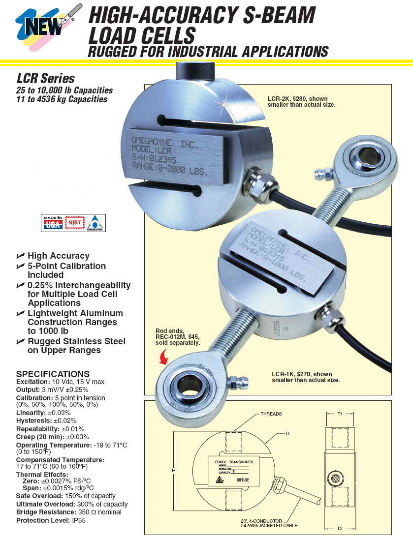 Omega LCR S型稱重傳感器(load cells)