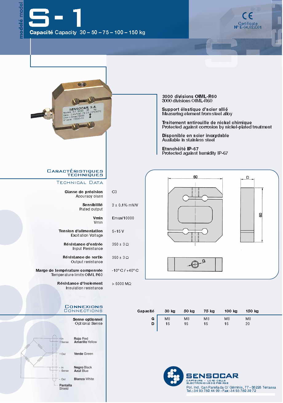 Sensocar S-1 S型稱重傳感器(load cells)