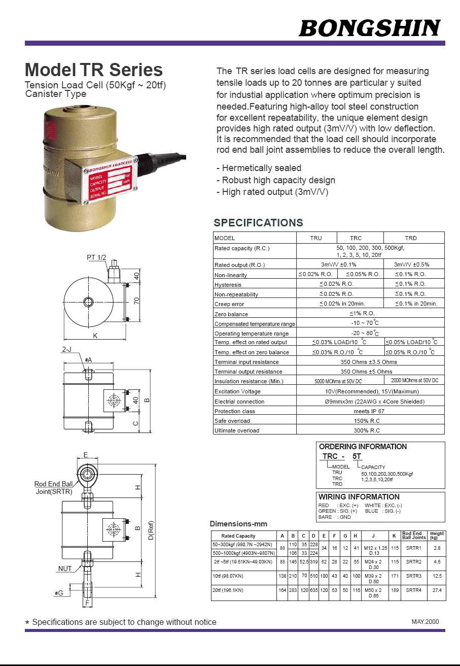 TR 拉式稱重傳感器(load cell)