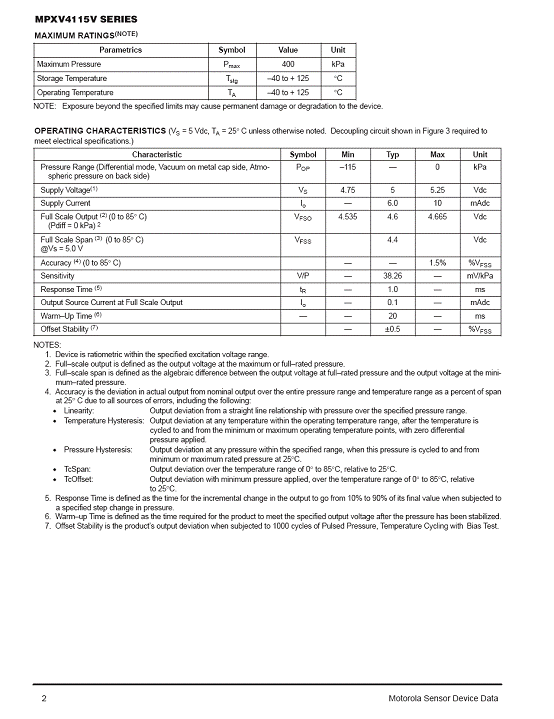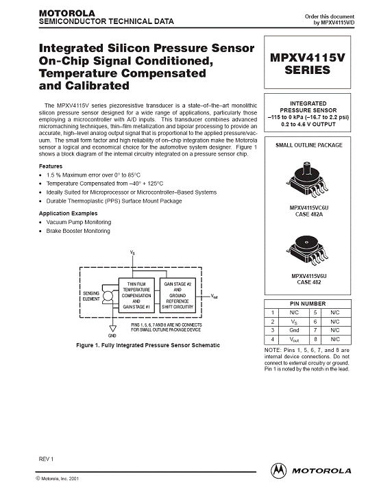 MPXV4115V 氣壓傳感器(sensor)