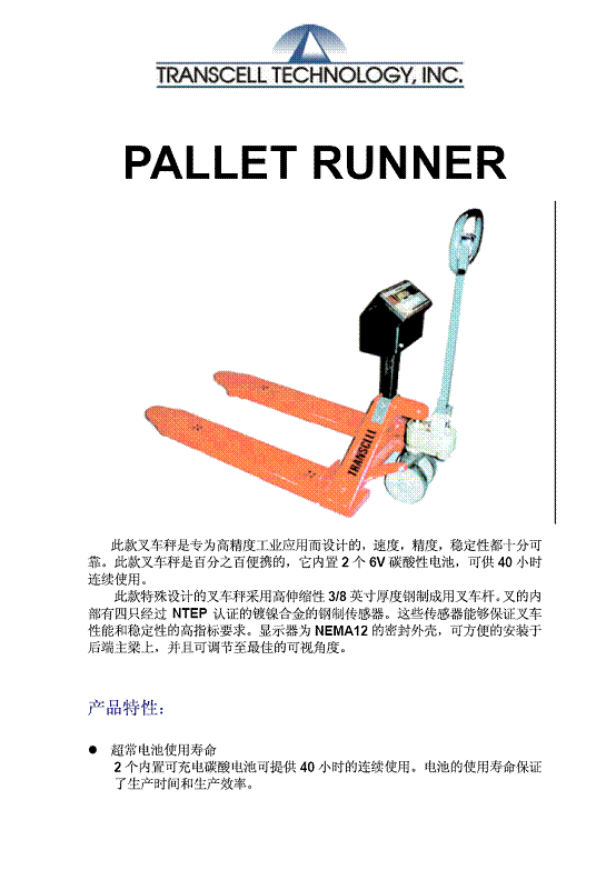 Transcell PALLET RUNNER 叉車秤(scales)