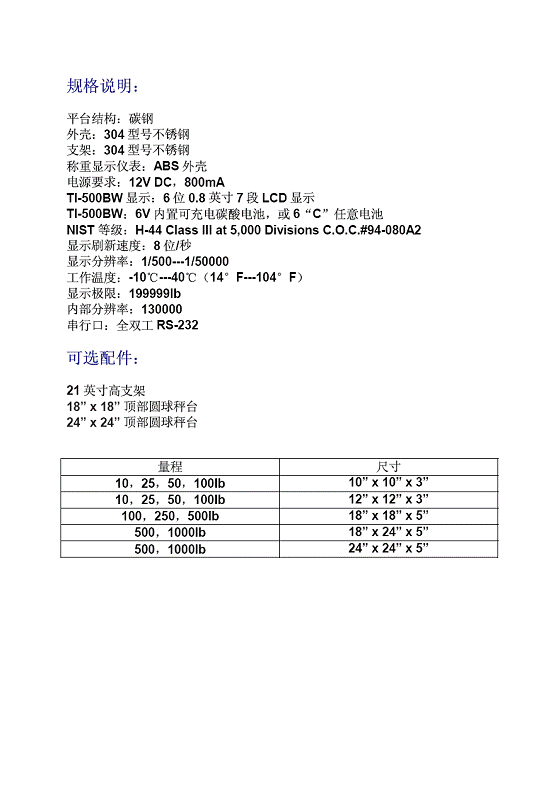 Transcell MSB-500BW 工業(yè)秤(scales)