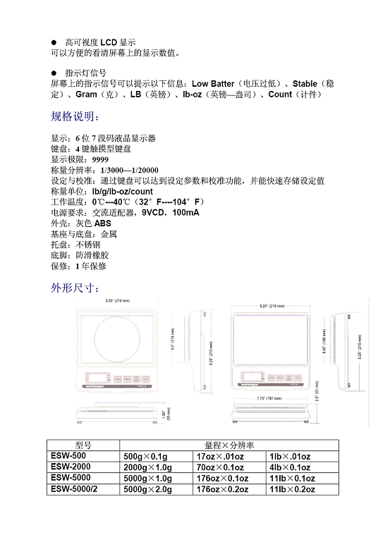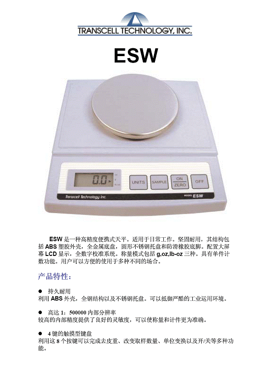 產(chǎn)品名稱(chēng):Transcell ESW 高精度天平(scales)