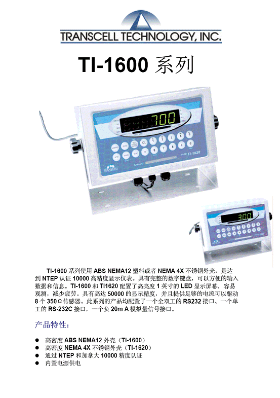 Transcell TI-1600 高精度顯示儀表(Indicator)