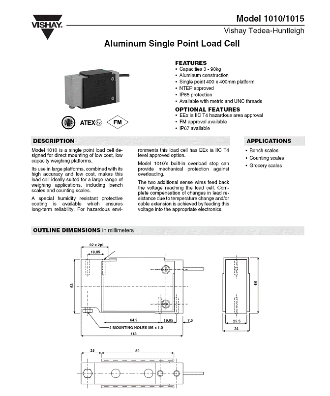 美國(guó)Tedea-Huntleigh稱重傳感器