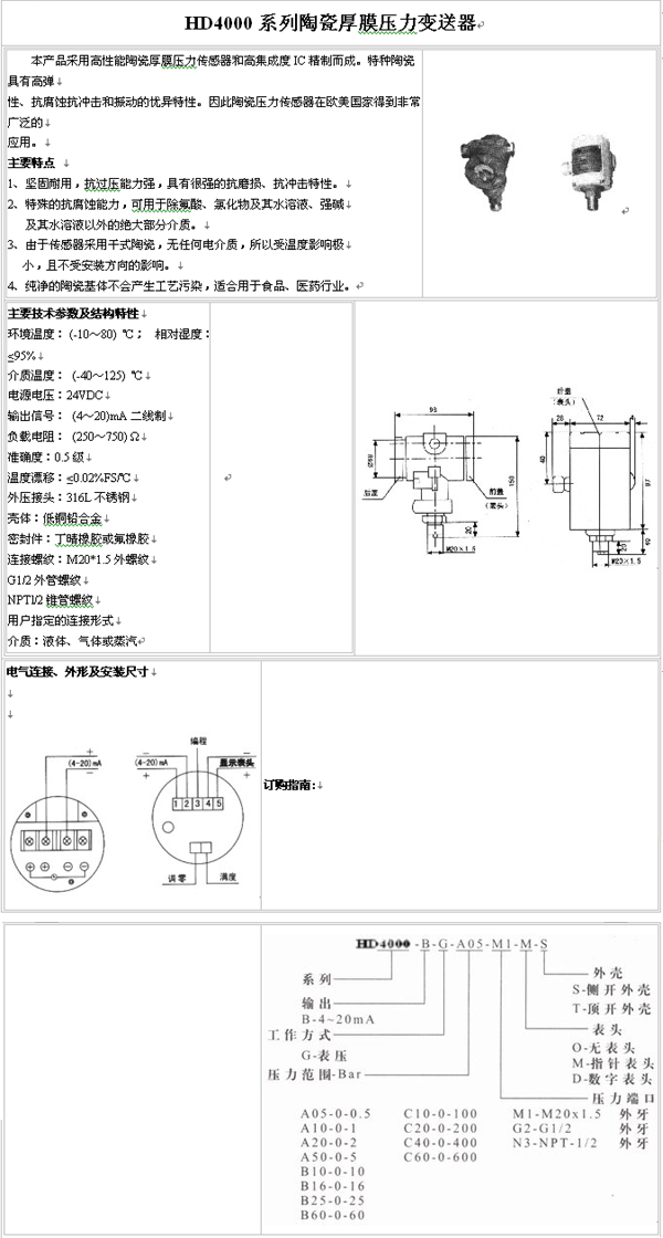 HD4000系列 陶瓷厚膜壓力變送器(pressure sensor):