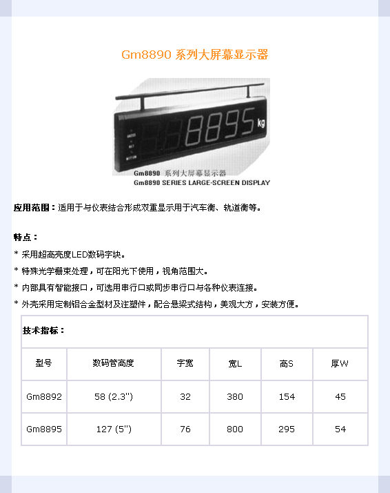 產(chǎn)品名稱(chēng):Gm8890 系列大屏幕顯示器(Indicator)