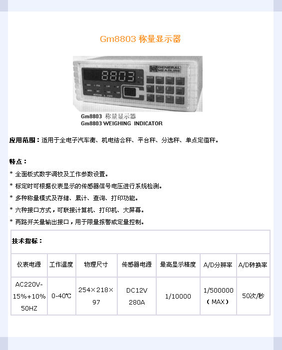 Gm8803 稱量顯示器(Indicator):